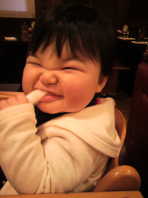 配られたおしぼりとプラスチックのスプーンで楽しく遊んでいました。